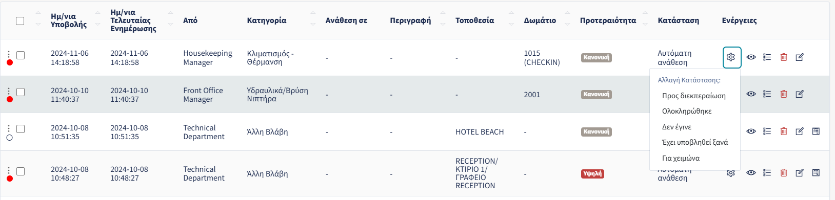 - Προτεραιότητα: Η προτεραιότητα μπορεί να προσαρμοστεί ανάλογα με τη σοβαρότητα του προβλήματος.