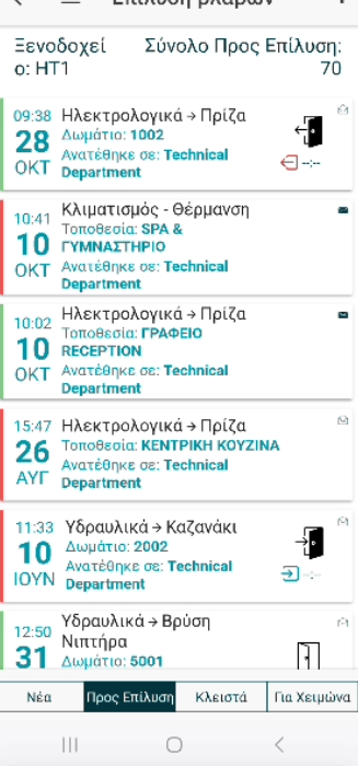 - Προς Διεκπεραίωση: Βλάβες που βρίσκονται υπό εξέταση και επιδιόρθωση.