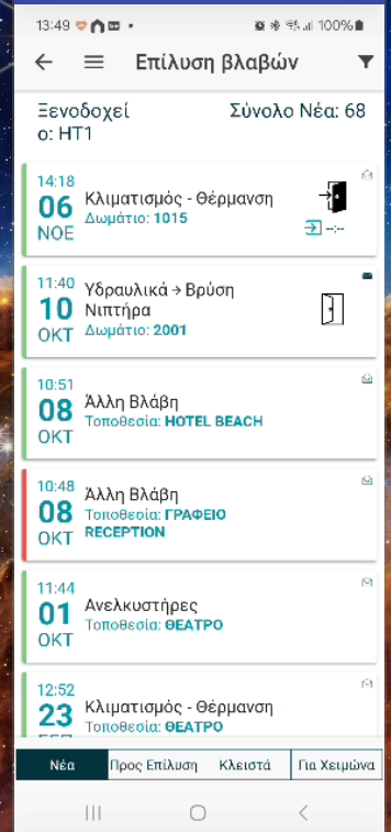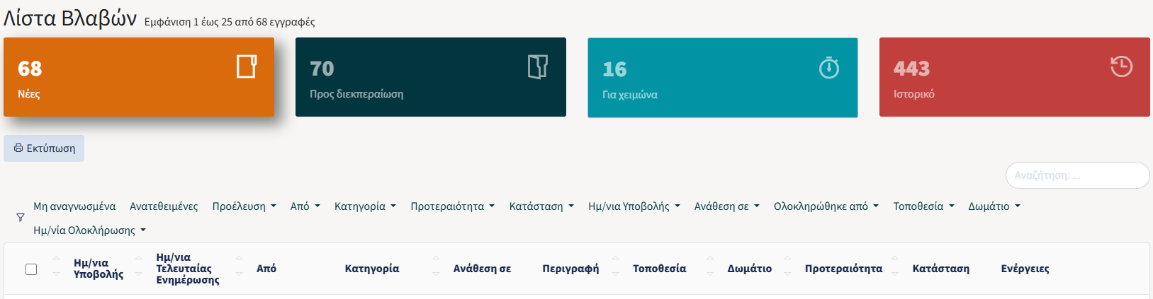 - Νέες: Βλάβες που δεν έχουν ακόμα διαχειριστεί.