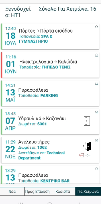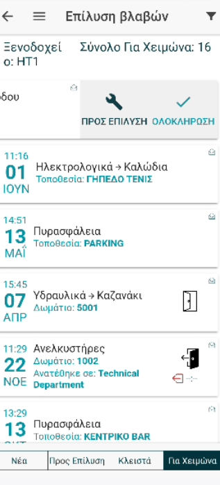 - Για Χειμώνα: Βλάβες που έχουν προγραμματιστεί για επίλυση κατά τη χειμερινή περίοδο.