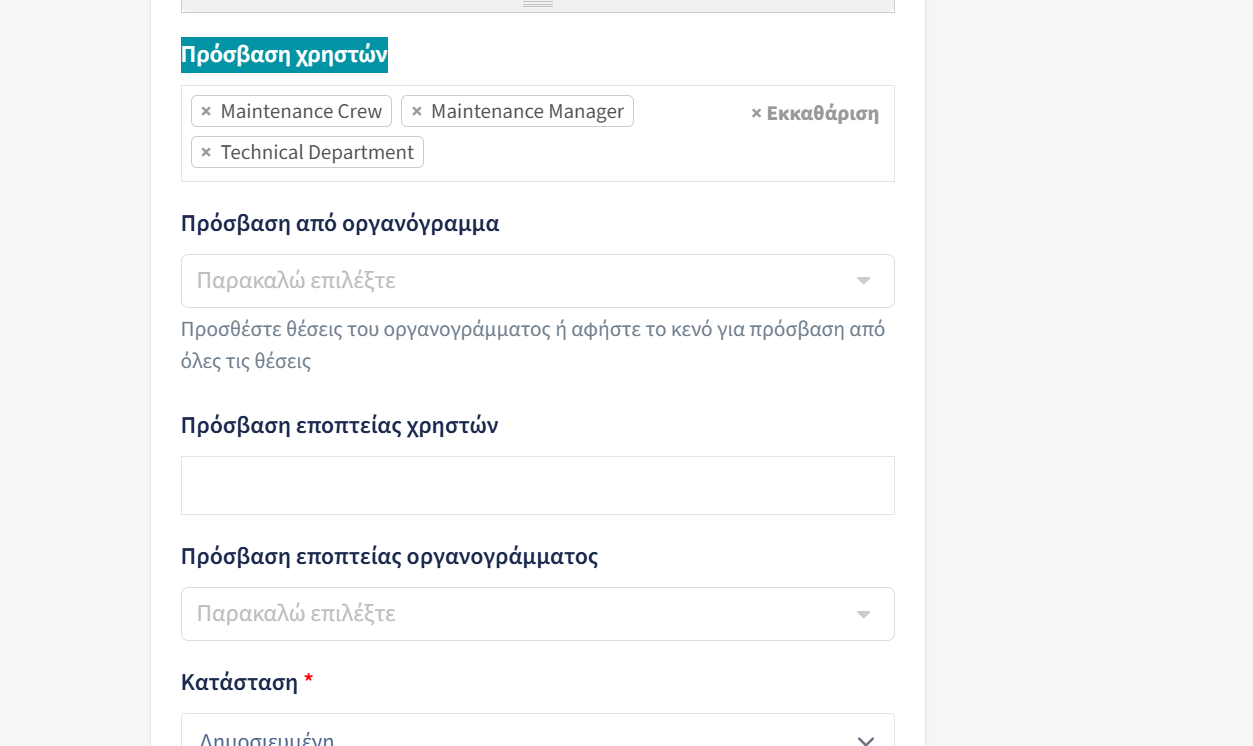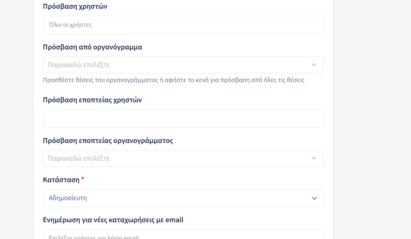 - Επιλέξτε τους χρήστες που θα έχουν πρόσβαση στο συγκεκριμένο e-Form.