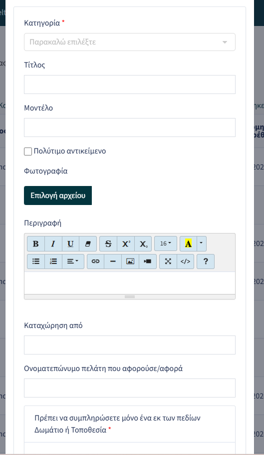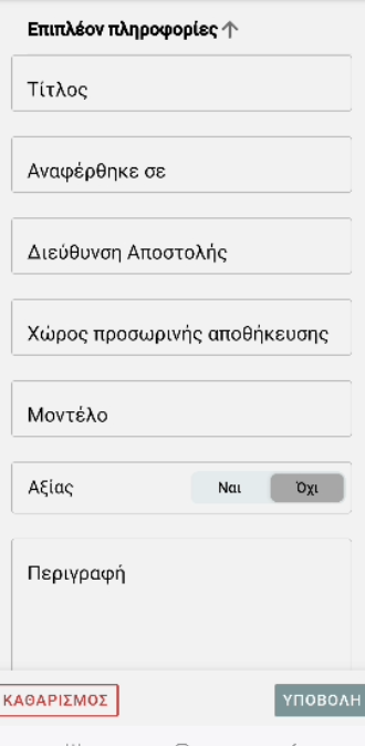 - Φωτογραφία: Επισυνάψτε φωτογραφία του αντικειμένου αν υπάρχει.