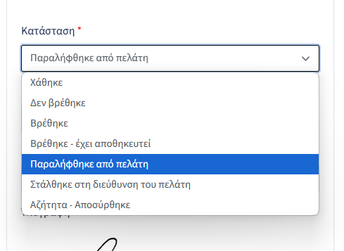 - Βρέθηκε: Καταχωρήστε αν το αντικείμενο έχει βρεθεί.