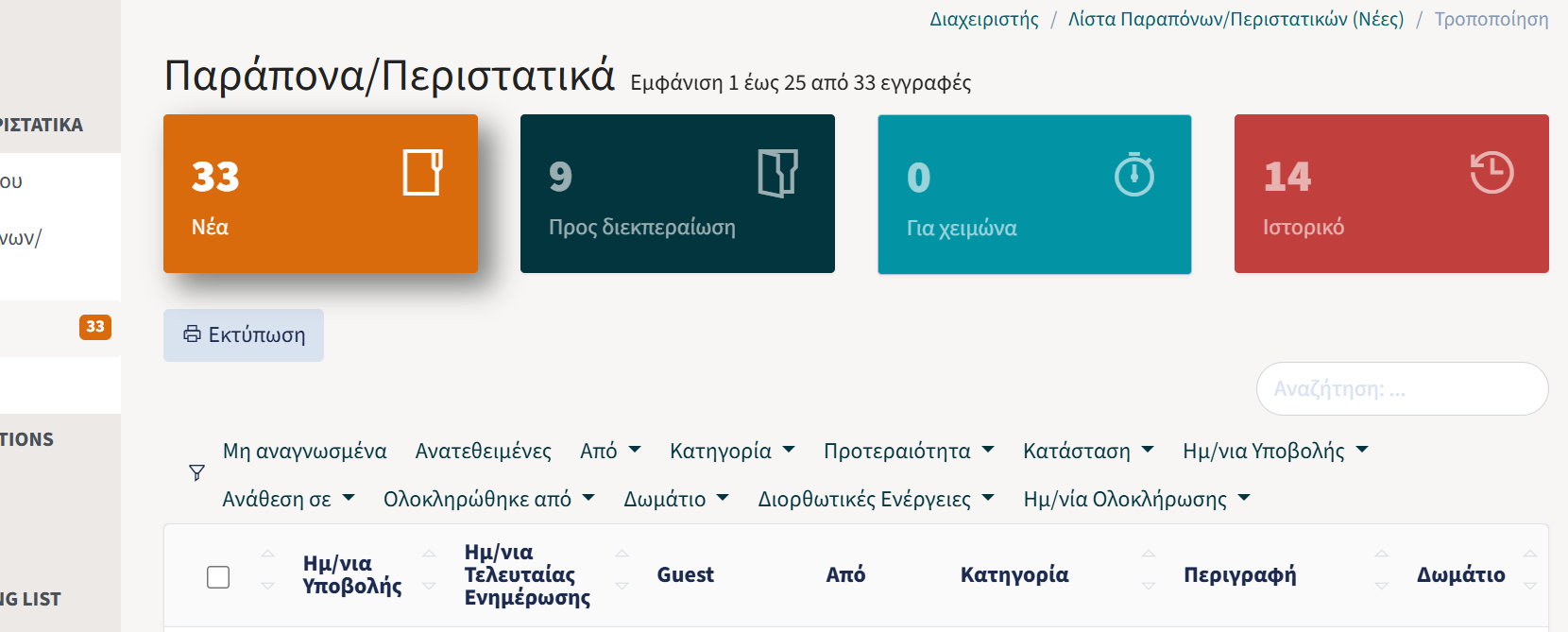 - Για να εποπτεύετε την κατάσταση των παραπόνων, χρειάζεται να έχετε τον ρόλο Στέλεχος Διοίκησης.