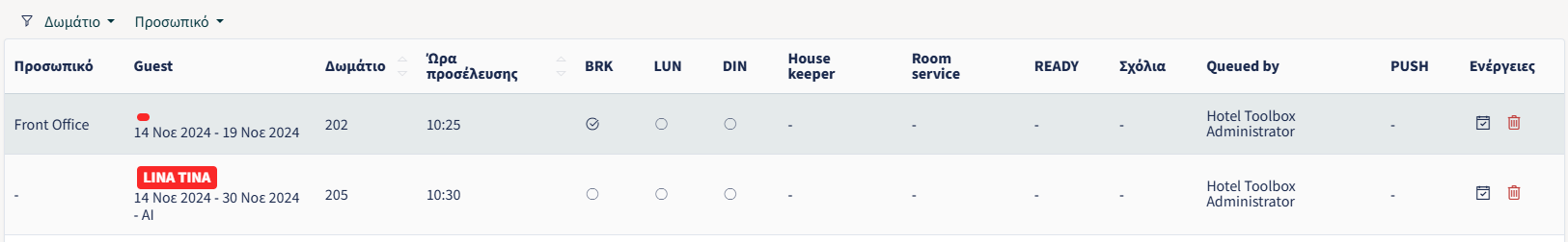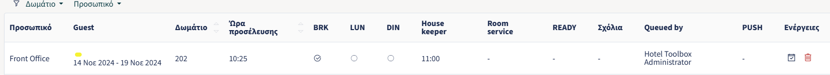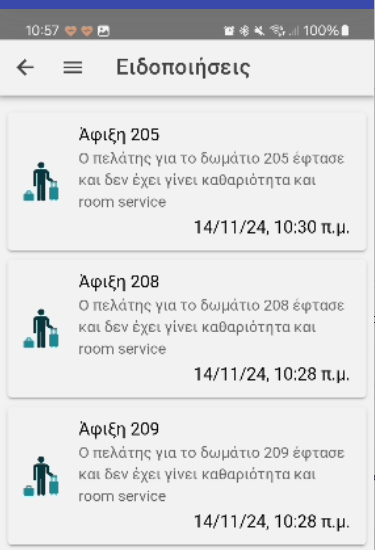 - Η ειδοποίηση θα ενημερώσει το προσωπικό ότι ο πελάτης έχει φτάσει και χρειάζεται άμεση καθαριότητα του δωματίου.