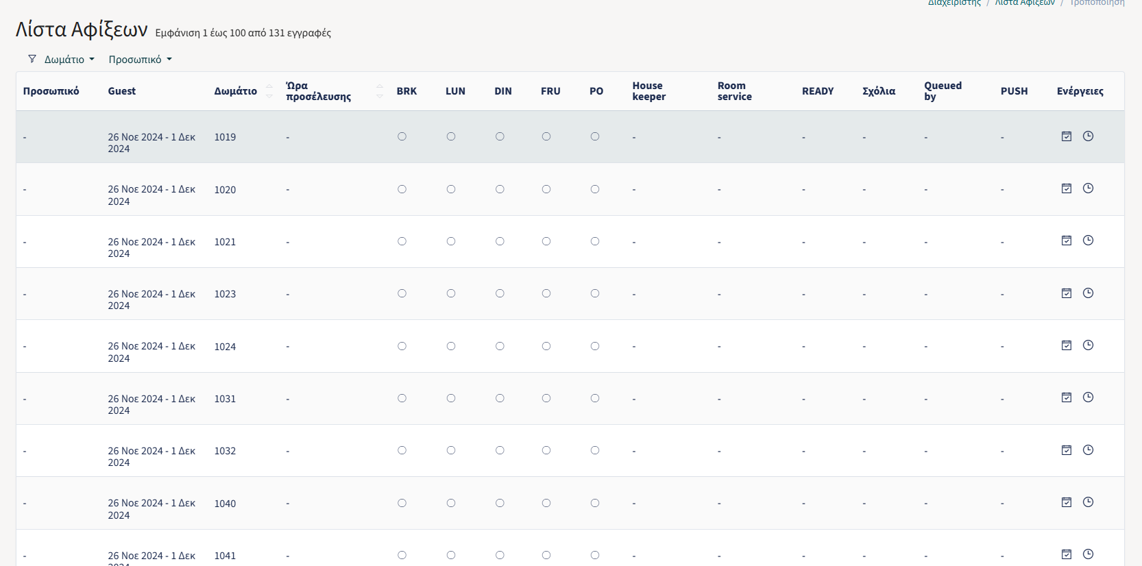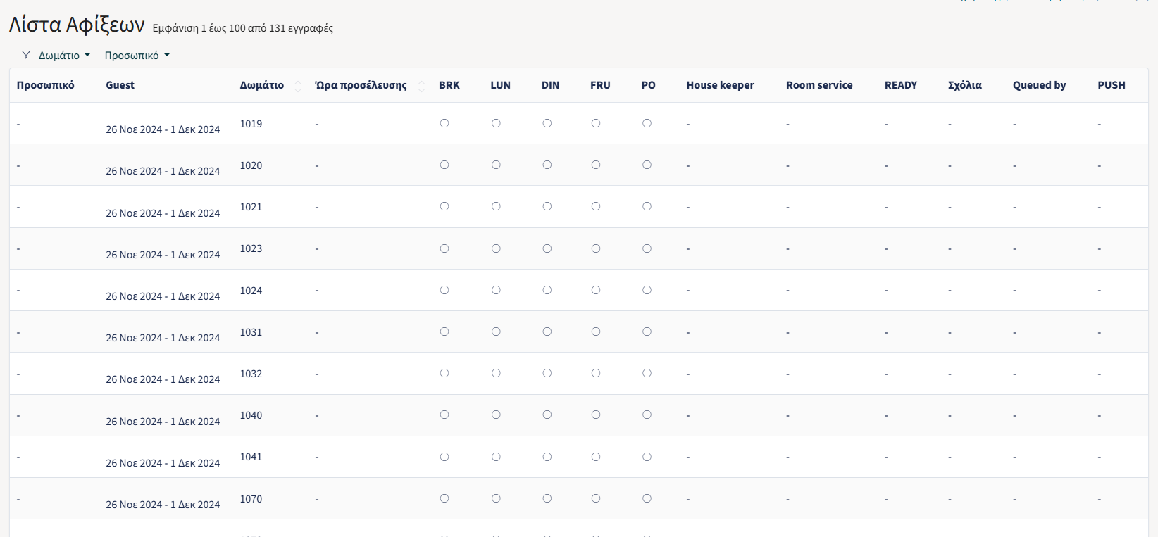 - Μόλις συνδεθείτε, μπορείτε να δείτε τις σημερινές αφίξεις από τη ρεσεψιόν.