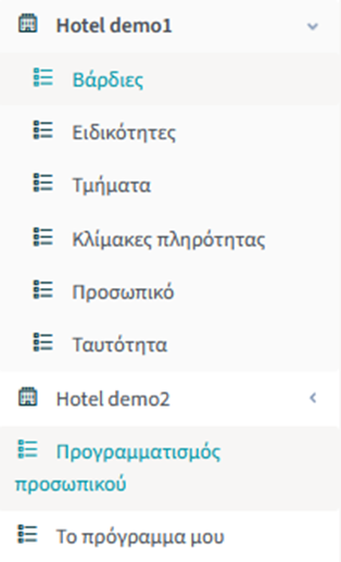 Με το module αυτό αποτυπώνεται ο προγραμματισμός της μονάδας για το απασχολούμενο προσωπικό. Καθορίζονται βάρδιες, ειδικότητες/αρμοδιότητες και τμήματα, τα οποία λειτουργούν σε επιλεγμένες βάρδιες και απασχολούν προσωπικό της μονάδας με συγκεκριμένες ειδικότητες/αρμοδιότητες. Κάθε σεζόν οι πληροφορίες αυτές συνδυάζονται μέσα από την «ταυτότητα» μονάδας καθορίζοντας τις ανάγκες σε προσωπικό για κάθε τμήμα, βάρδια και ειδικότητα.