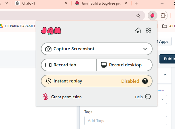 • Μπορείς να καταγράψεις ένα bug απευθείας από το περιβάλλον της εφαρμογής, χρησιμοποιώντας το plugin του Jam στον browser σου.