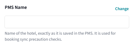 - Αντιγράφουμε το text που θα εμφανιστεί στο πεδίο Hotel Name και και το εφαρμόζουμε στο πάνω μέρος της σελίδας στο πεδίο PMS Name, πατώντας "Change".