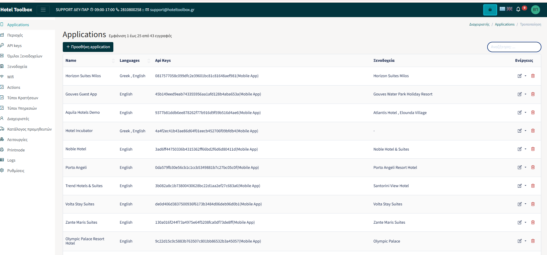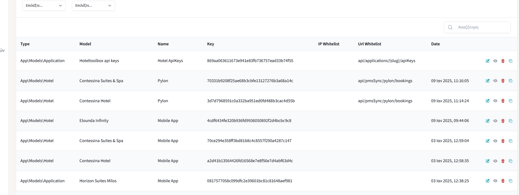 Από το διαχειριστικό προτού κάνουμε impersonation, στην ενότητα API keys, βρίσκουμε από τη λίστα με τα API keys, ένα τυχαίο ξενοδοχείο που αντιστοιχεί σε API key που αφορά το Pylon.