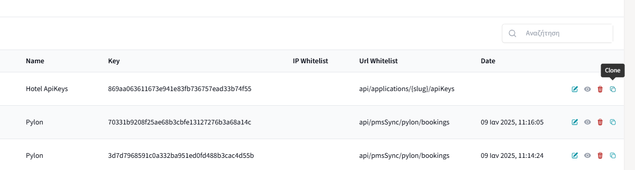 Παραγωγή API key για διασύνδεση με PMS Pylon