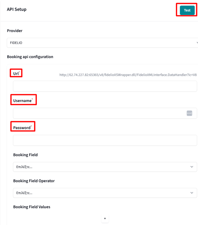 - Συμπληρώνουμε στην ενότητα PMS Intergration (API setup) τα στοιχεία που μας έχουν δοθεί