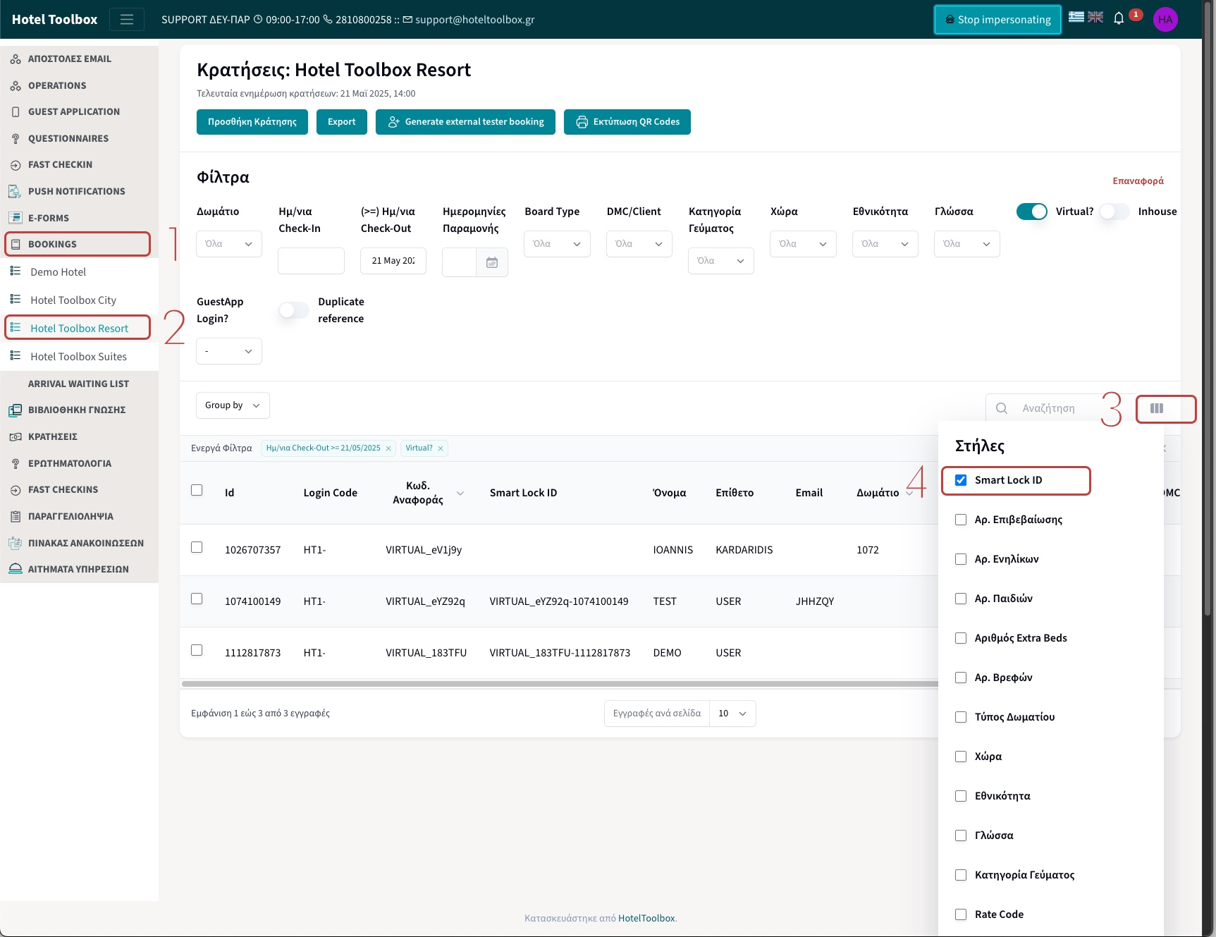 - Click on the icon on the top right of the list to add the Smart Lock ID column