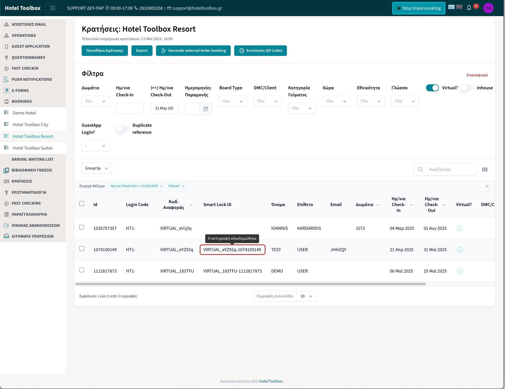 - Simply click on the desired customer’s Smart Lock ID and it will be copied in your clipboard