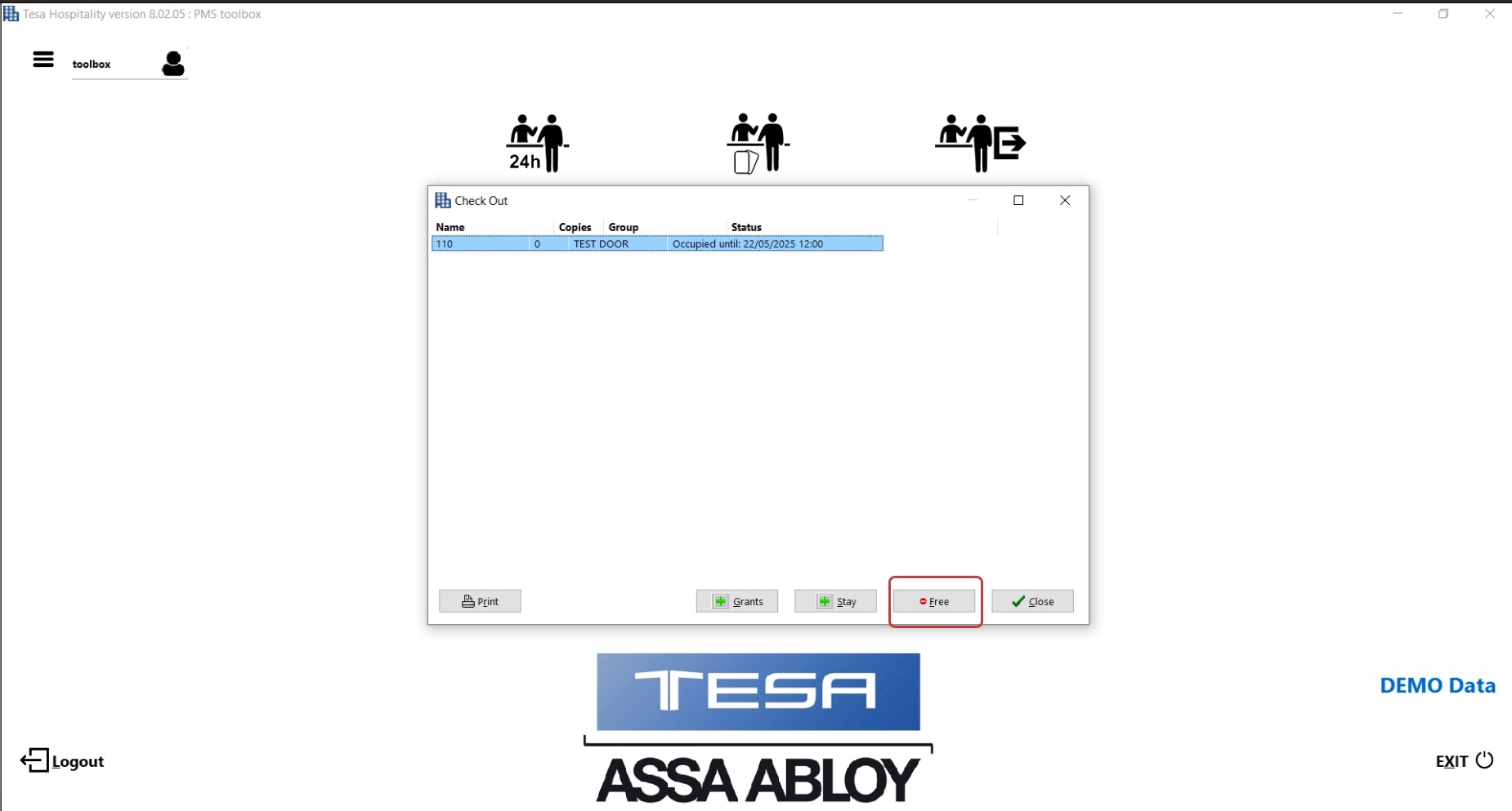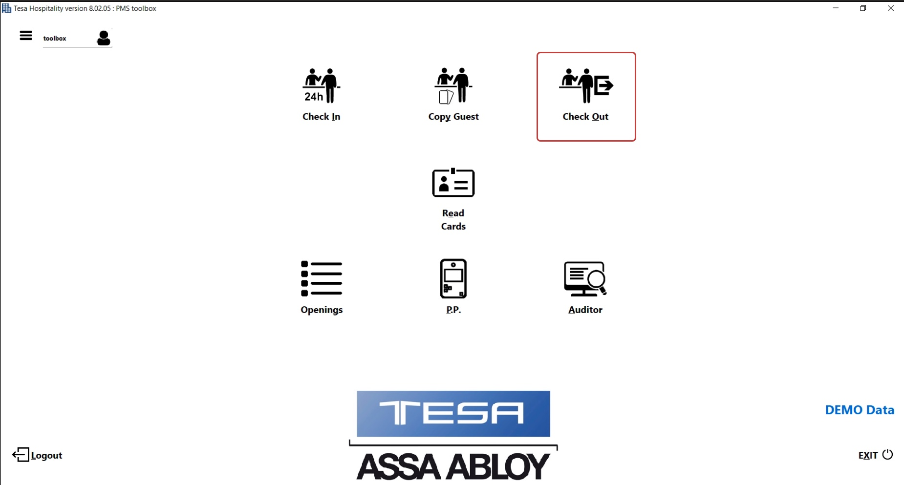 Choose Check Out option on the TESA Hotel application